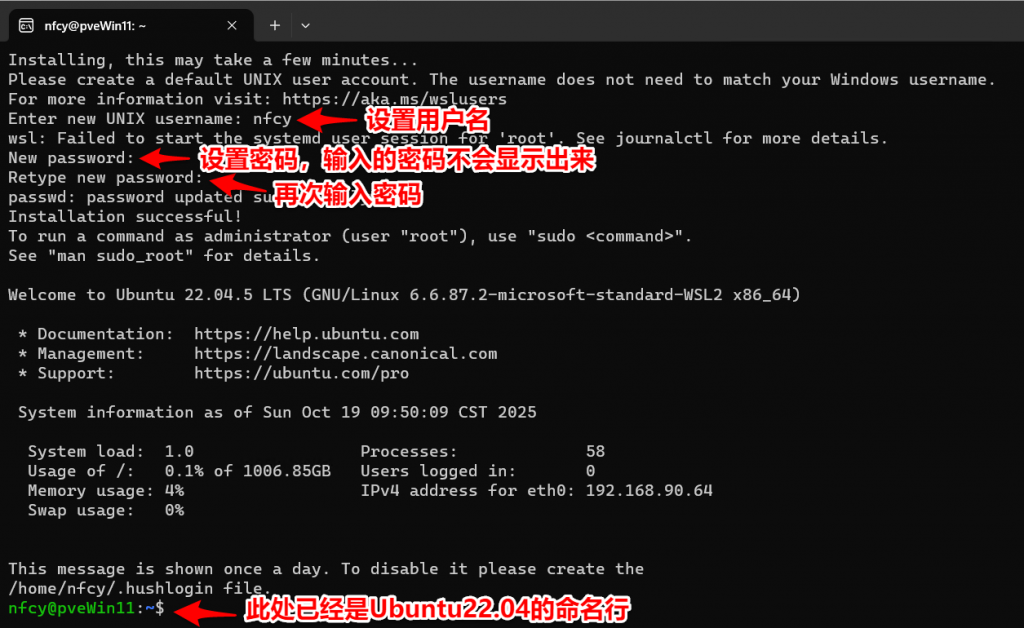 e、首次打开时,会提示输入用户名,输入一个自定义的用户名即可(优先用英文),然后是设置密码,之后就彻底安装完成。