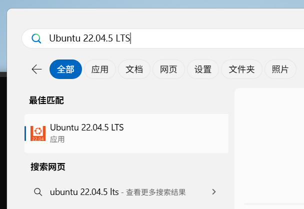 b、在“Microsoft Store”顶部搜索栏搜索“Ubuntu-22.04”;