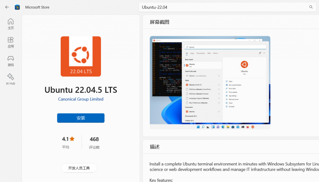 2、安装Ubuntu22.04子系统